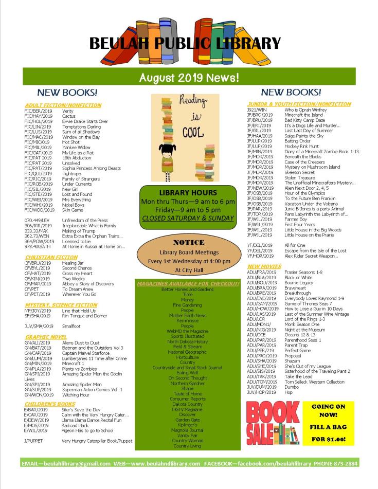 August 20, 2019August 20, 2019 Beulah Public Library Monthly Newsletter