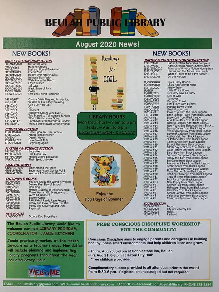 August 14, 2020August 14, 2020 Beulah Public Library Monthly Newsletter